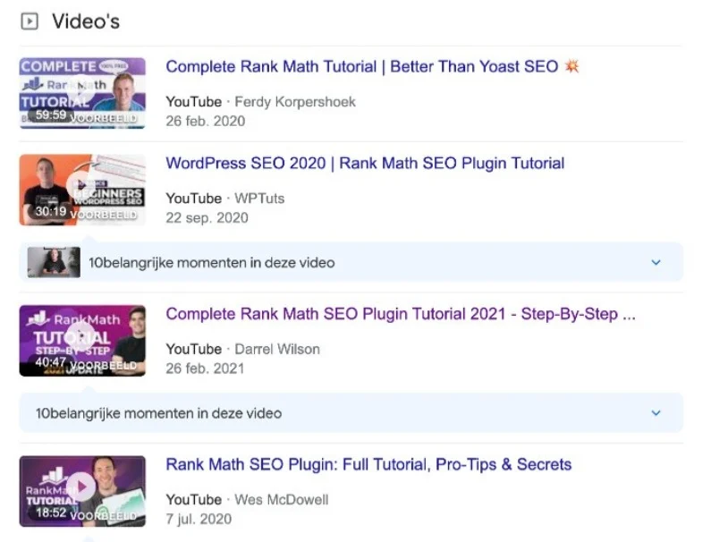 Rank Math kun je zo instellen dat deze gestructureerde data automatisch aan je berichten en pagina’s toegevoegd wordt zodat je ook in de ‘Rijke zoekresultaten’ tevoorschijn kunt gaan komen.