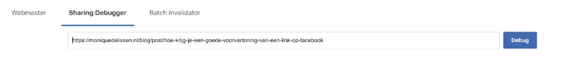 Kies voor “Sharing Debugger” en in het nieuwe venster dat opent kun je je link invoeren: